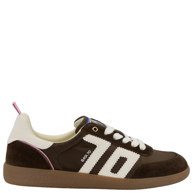 Meet the Ghost N - a vintage soccer-inspired sneaker with a modern streetwear soul. Warm earthy tones, genuine suede details, and sporty fabrics team up with crisp white laces and a contrast heel cap for a look that's clean, cool, and anything but basic. Pop-color pull tabs and a gum rubber sole drive Back 70's signature retro energy, along with the Back 70 emblem that totally seals the deal. Designed for women on the hunt for a sneaker with right-now energy, complete versatility, and an unmatchable degree of comfort. Why pick just one?