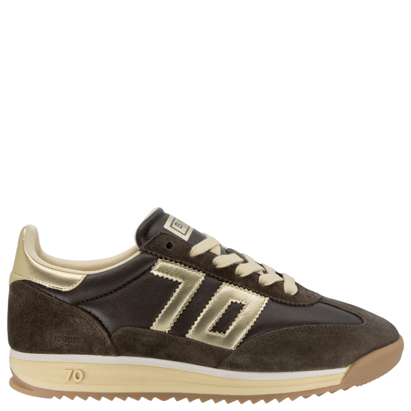 Meet the Jogger N - designed in dark, moody neutrals with luxe metallic gold Back 70 branding, this pair delivers understated glam with serious comfort. A low platform, lightweight build, and heritage icon keep things retro-cool and effortlessly wearable. Perfect for women searching for high-end sneakers with rich gold touches that move from street to soirée without skipping a beat.
